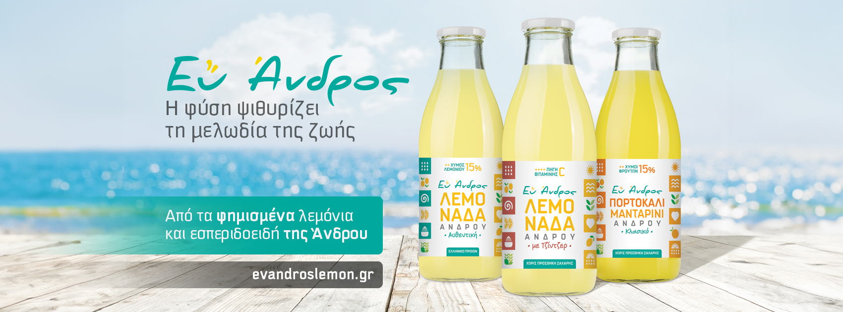 Φωλιασμένη στις ηλιόλουστες Κυκλάδες, στο ζωντανό νησί της Άνδρου, βρίσκεται η ουσία των προϊόντων που αιχμαλωτίζουν το ίδιο το πνεύμα των ελληνικών νησιών, των προϊόντων «Ευ Άνδρος». Μια ιστορία παράδοσης, μια ιστορία υφασμένη στον ιστό της τοπικής ζωής, όπου κάθε καρπός είναι μια απόδειξη της φυσικής γενναιοδωρίας του νησιού.